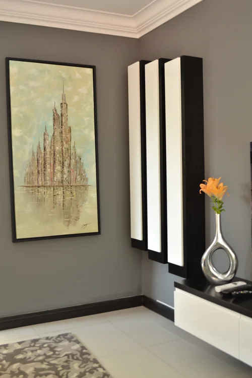 This Midrand home belongs to a father and son tag team. The look we went for was what we refer to as 'soft masculine', the lines are straight and distinct, then we added fragile pieces that took the edge off. Our shades of grey colour palette, rendered an amazing canvas. We also added subtle browns to compliment the cool colour scheme.